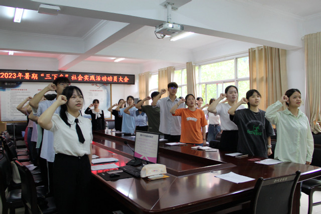 会上,员工代表龚玉春带领全体志愿者庄严宣誓,承诺将个人理想信念与祖国和人民的需要结合起来,沿着党奋进的道路,深入基层,在农村基层展现文院学子的风采,在多角度的调研中发挥服务精神,践行青年责任。