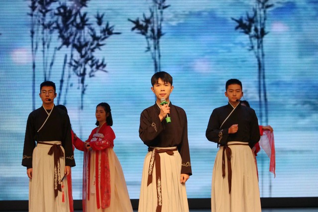 经过激烈的角逐,共有十二组选手进入决赛。比赛在曼妙的舞姿中拉开了帷幕。一号选手一身戎装演绎了英姿飒爽的少年将军花木兰,展现了巾帼不让须眉的气魄。其他参赛作品中,有独特的中华国学气韵,有逶迤峥嵘的古老蜀道,有穿越千年缠绵悱恻的儿女情长,有所向披靡的盖世英雄楚霸王项羽、坚贞不渝的虞美人,有肩负前辈嘱托开创美好未来的新一代青年,还有倾情演绎的国际学院的同学们。他们有着不同的语言和文化,却因对中华文化的喜爱相聚一起。比赛形式多种多样,精彩的诵读加上乐器、歌曲、舞蹈和书法的陪衬,给观众带来了一场美妙绝伦的视听盛宴,台下掌声连连不断。